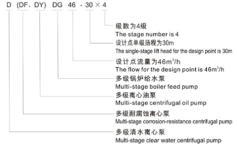 D(DF、FY)、DG型泵系卧式、单吸、分段式多级离心泵,吸入口为水平方向,吐出口为与水平垂直向上。泵的进水段、中段、出水段、轴承体等泵壳体部分通过拉紧螺栓联成一体,并根据泵的扬程选择泵得级数。(可根据用户需求变换水泵进出口方向)